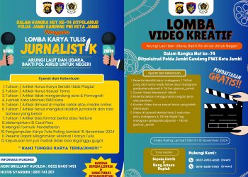 Buruan Daftar ! Ada Total Belasan Juta Hadiah Lomba Karya Tulis & Video Kreatif Ditpolairud Polda Jambi ke- 74, Ini Rincian Hadiahnya